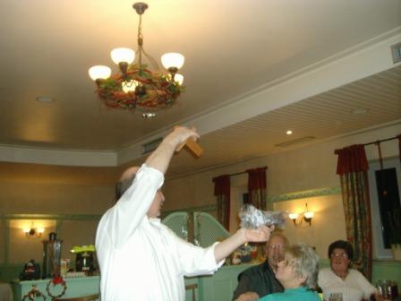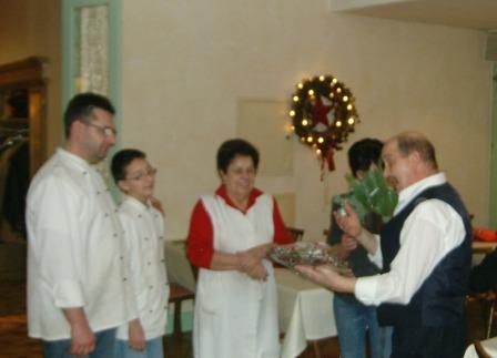 Weihnachtsfeier ließ der Kaninchenzuchtverein Landau ein Vor allem zur Freude der Kinder erschien wenig später der Nikolaus (Werner Höcherl), wobei er seinen Krampus (Hans Schachtl jun.) mit gebracht hatte. Der Heilige sparte nicht mit Lob und Tadel und wusste über jedes Kind etwas zu berichten. Werner Höcherl selbst hatte das Verserlschreiben übernommen, unterstützt von den Eltern. Selbst verständlich brachte er für alle Buben und Mädchen ein Päckchen mit. Es gab noch weitere Geschenke, nämlich für die Herbergsfamilie Bachhuber. Vorsitzender Schachtl nahm die Feier zum Anlass, um sich für die Unterstützung während des Jahres zu bedanken. Sodann leitete man zur Versteigerung über. Hans Schachtl verstand es, die gespendeten Waren, meist- bietend unter die Leute zu bringen. Dabei ging es gewohnt kurzweilig und humorvoll zu. Zu guter Letzt ließen sich die Züchter zum Kaffee die Kuchen und Torten schmecken, die einige Frauengruppenmitglieder spendiert hatten. Der Nikolaus und sein Krampus waren auch zu den Kaninchenzüchtern gekommen. | |||||||||||||||||||